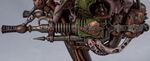 The weapon is an arcane device of unknown, although <s>possibly</s> obviously daemonic origin and is fused to the end of the creature's right arm. The Rot Cannon belches out shells that are so impregnated with dark ichor and infection that a mere scratch from the weapon's bone fragments will immediately and agonizingly fester into a crippling injury. | |||