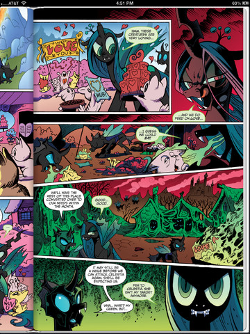 Insectoid shape shifters that feed on love and gain power from it. In their natural forms changelings have gaunt bodies covered in holes and are equipped with insect like wings and a horn and they capture prey by wrapping them in some kind of webbing. They are led by a queen who is named "Chrysalis" in the show, who is the vanguard for an invasion by subjugating an area of conquest by infiltrating it from within and taking out it's body of government to throw the rest of the place in disarray, which in the show's case was Canterlot's Captain of the Royal Guards and Princess Celestia.