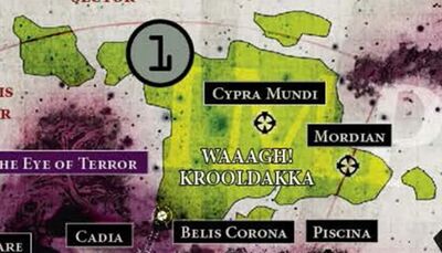 Located near the aforementioned Eye of Terror. This Ork Empire has been at war with the Ork Empire of Gathrog for decades. The two empires field such numbers that if they were to ever unite, the resulting Waaagh! could devastate the Cadian Gate. Dregruk is currently aligned to the infamous Warboss Ghazghkull Mag Uruk Thraka. In the Third War for Armageddon, the forces of the Great Despot of Dregruk were one of the largest Ork armies on Armageddon and were fielded against Armageddon Prime.