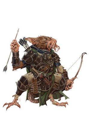 Zoogs are intelligence, dangerous and amoral marsupial pack-predators, resembling ratfolk whose snouts sprout a dense forest of short, thin, prehensile tentacles and whose feet are secondary hands. They have two pouches on either side of their abdomen, and a complex social structure based on a combination of generation (the longer your ancestors lived in this one patch of terrain, the more important you are) and whether they were reared in their mother's "dominant" or "secondary" pouch. They are intensely respectful of contracts, but they also believe in sticking strictly to the letter of the law, not the spirit; if there's a loophole, then zoogs will exploit it, and sometimes do so even to their own detriment. Though omnivorous, they particularly enjoy the meat of sapient creatures.